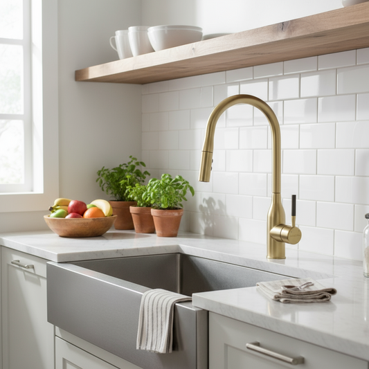 Grifo monomando para fregadero Rubí con cuello extensible en acero inoxidable dorado - Doble temperatura