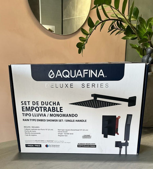 Set de Ducha Cuadrada, Monomando y Ducha de Mano en Acero Inoxidable - Acabado Negro Mate