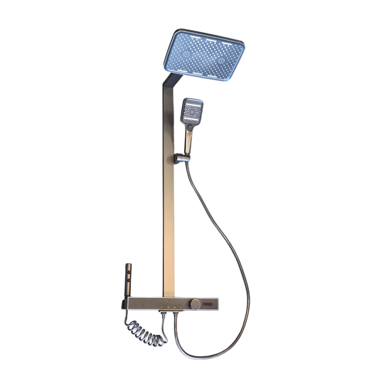Columna de Ducha Completa con Pantalla Digital y Cabezal Rectangular de 12" x 8" y Ducha de Mano 4"x5" (Acabado Gun Metal)