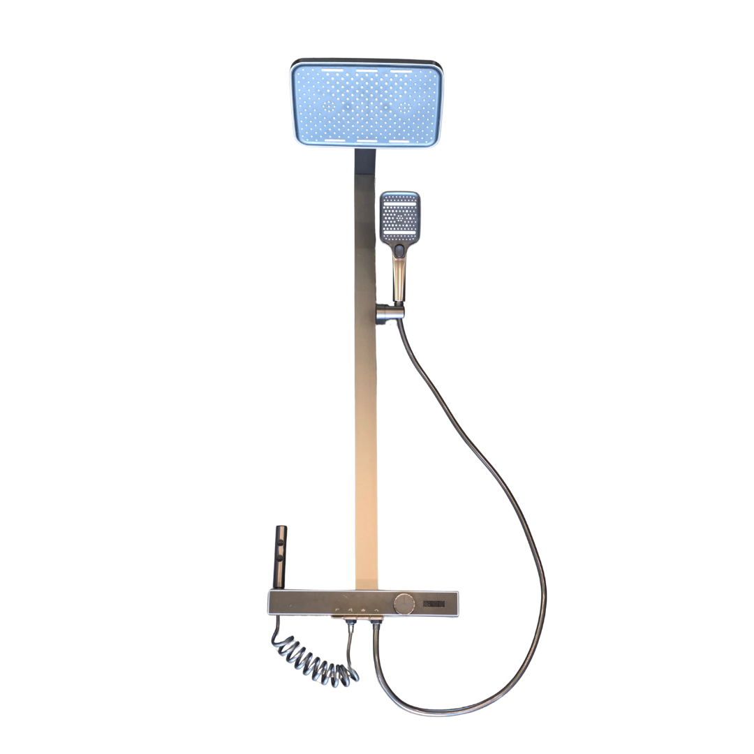 Columna de Ducha Completa con Pantalla Digital y Cabezal Rectangular de 12" x 8" y Ducha de Mano 4"x5" (Acabado Gun Metal)