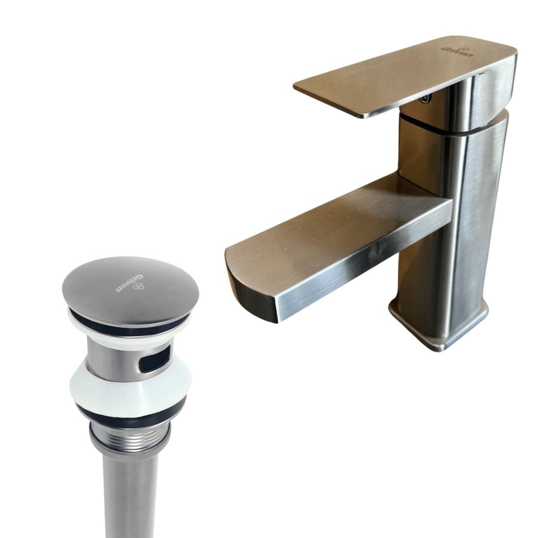 Combo de Grifo Monomando para Lavamanos Griven - Acabado Satinado (Doble Temperatura)+ Desague Push