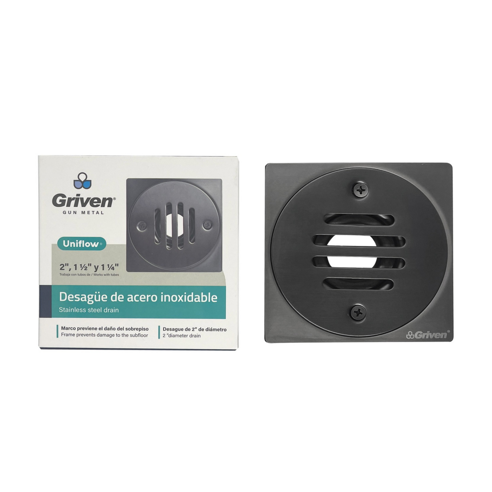 Desagüe de Baño Cuadrada 4"x4" en Acero Inoxidable - Acabado Gun Metal