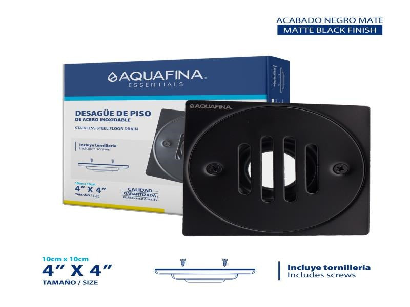 Desagüe de Baño Cuadrada 4"x4" en Acero Inoxidable - Diseño Redondo en Negro Mate