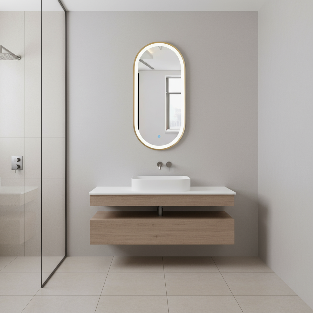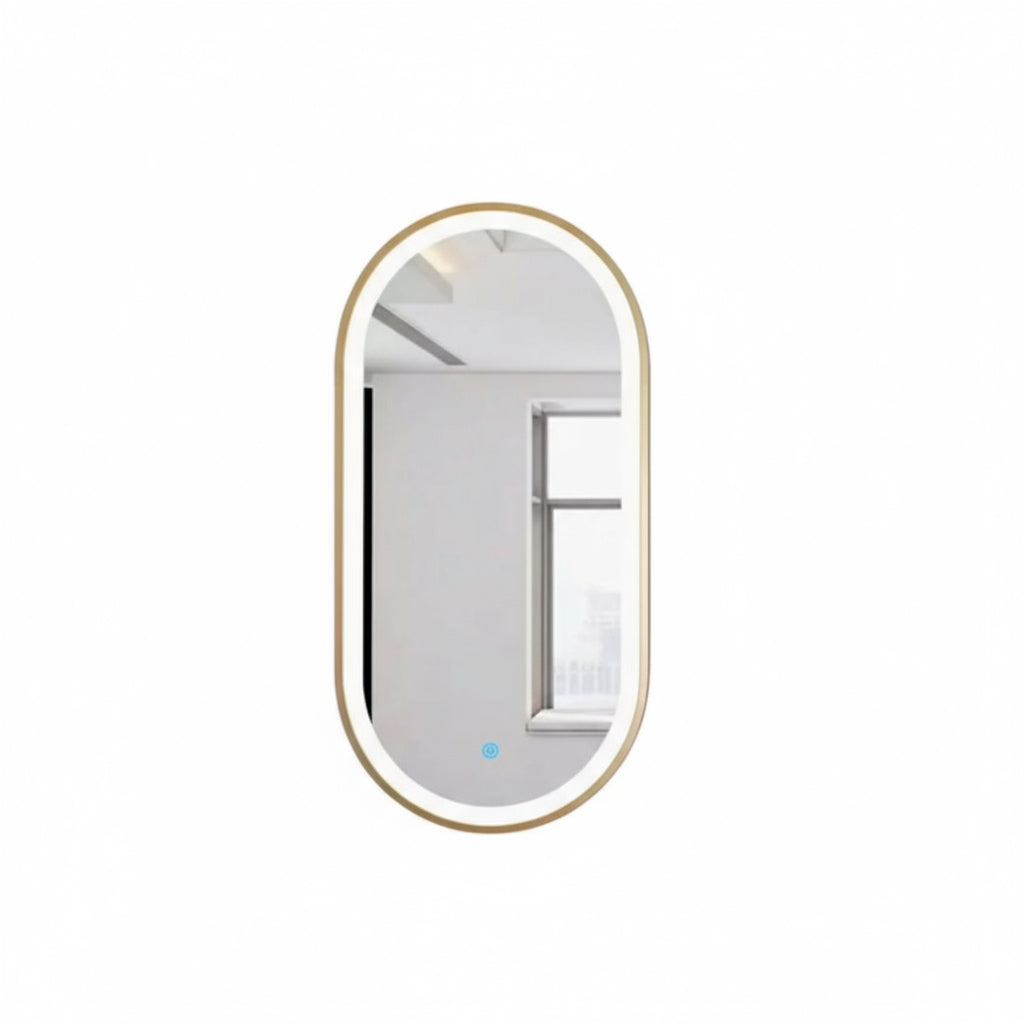 Espejo Ovalado con Acabado Dorado de 50X90CM con Luz LED - 3 Tonos de Luz