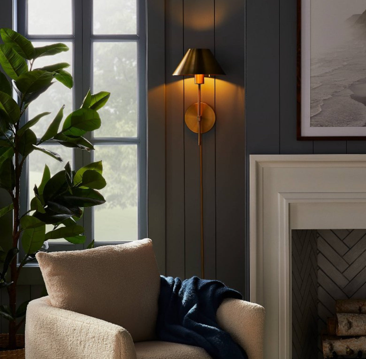 Eleva tu espacio con la exclusiva Lámpara de pared de aplique de metal (incluye bombillo LED) - Threshold™ diseñada por Studio McGee: Atenuable. La elegante pieza viene con herrajes de montaje y un práctico interruptor giratorio en el portalámparas. Adicionalmente, cuenta con una pantalla y cuerpo de metal, una base Edison E26, un cable de tela de 1.5 metros y es ETL Listed para cumplir con las normas de seguridad eléctricas. Ajusta la intensidad de luz deseada con su función regulable para crear un ambiente sofisticado. Dimensiones de 46.4 cm (alto) x 26.7 cm (ancho) x 28.6 cm (profundidad) y peso de 1 kg.