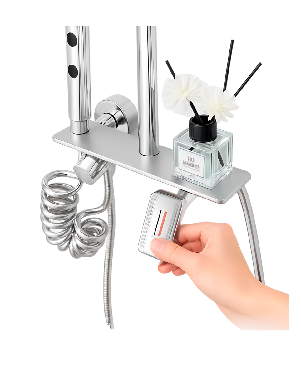 Set de Columna de ducha - Soporte de Pared, Cabezal Cuadrado de 9" y Ducha de Mano Cuadrada (Acabado Cromado)