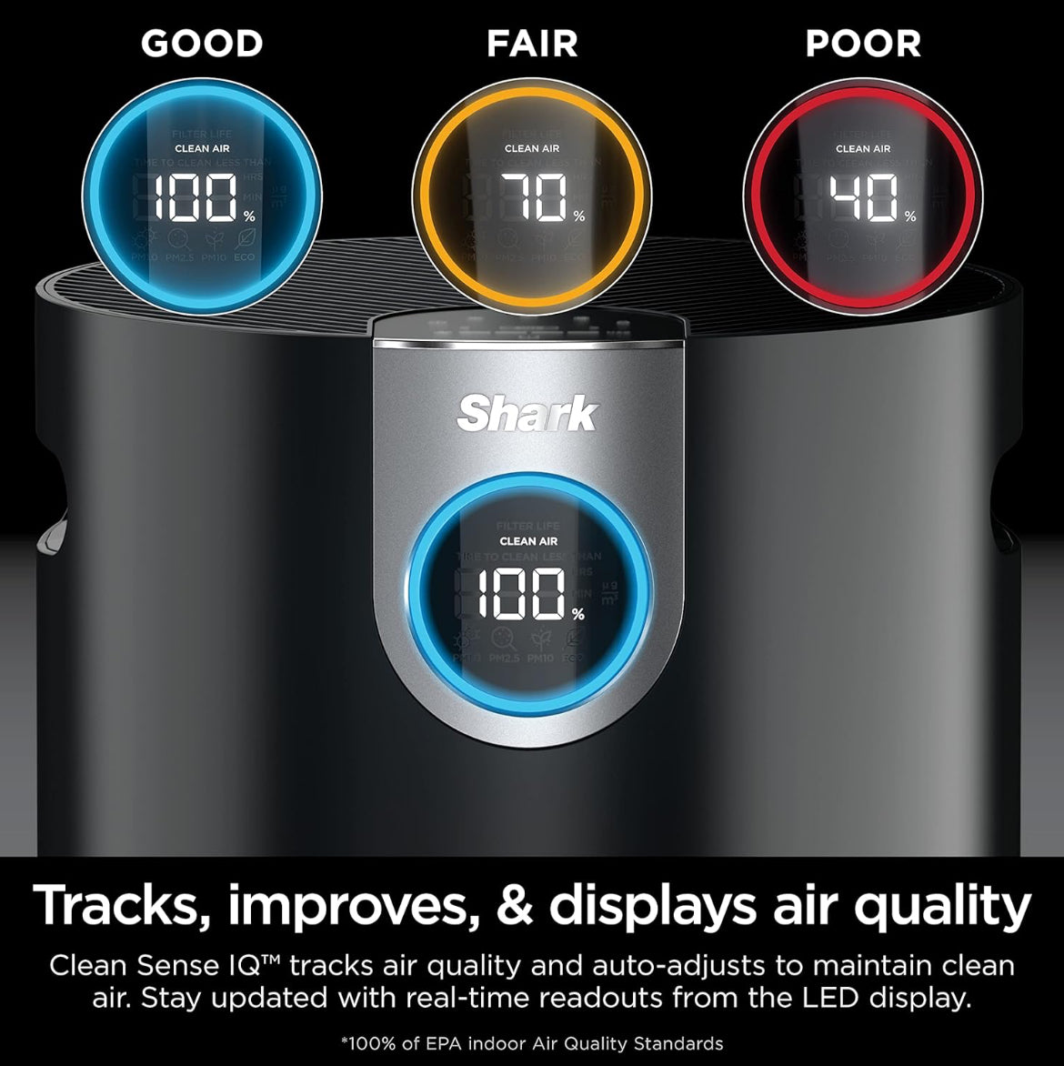 Shark Purificador de aire para el hogar, la oficina y el dormitorio, tecnología Clean Sense, filtro de aire HEPA, 1200 pies cuadrados, captura el 99.98% de las partículas, caspa de mascotas,